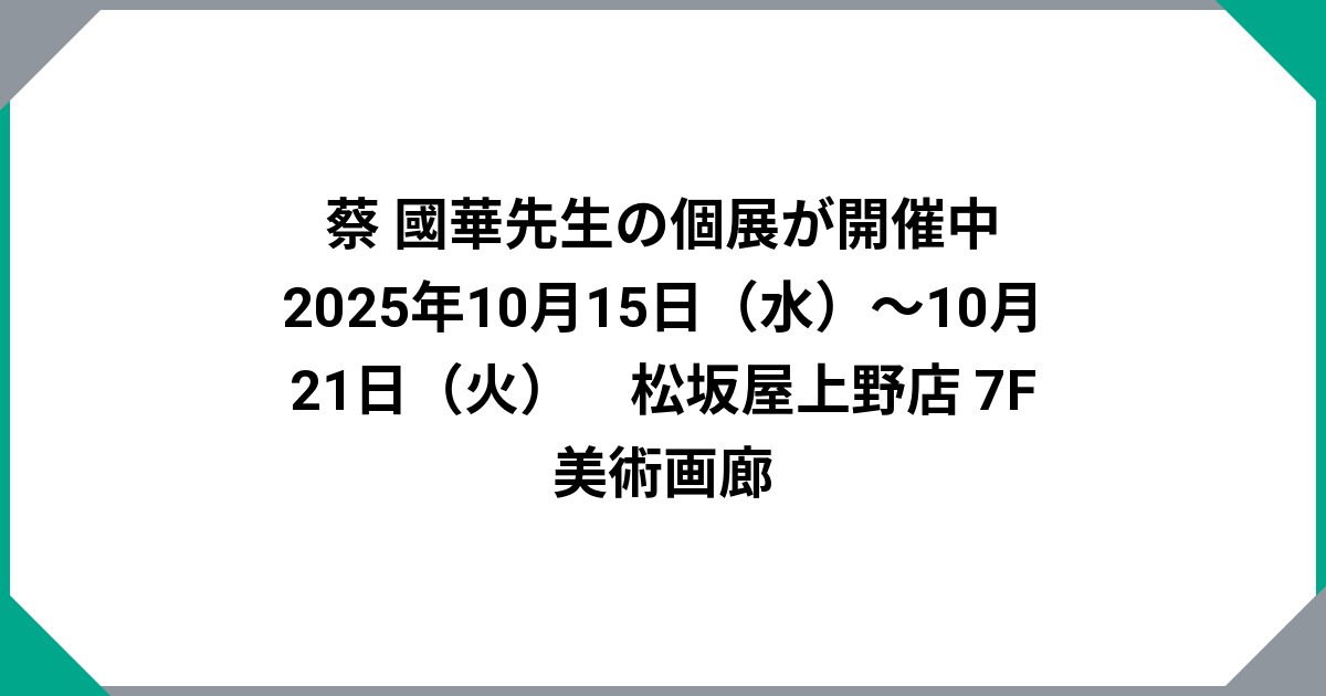 蔡 國華先生の個展が開催中 2025年10月15日(水)〜10月21日(火) 松坂屋上野店 7F 美術画廊