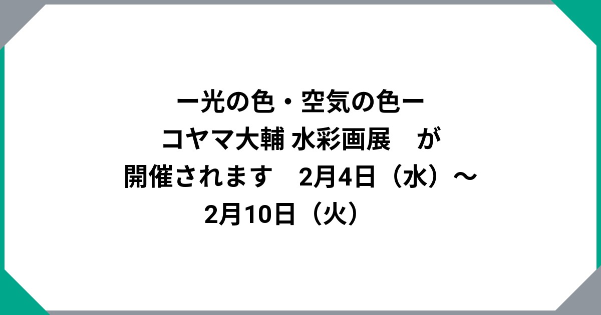 | TITLE | ー光の色・空気の色ーコヤマ大輔 水彩画展 | PERIOD | 2026/2/4(水)〜2/10(火) 10:00〜19:00(最終日17時終了) |