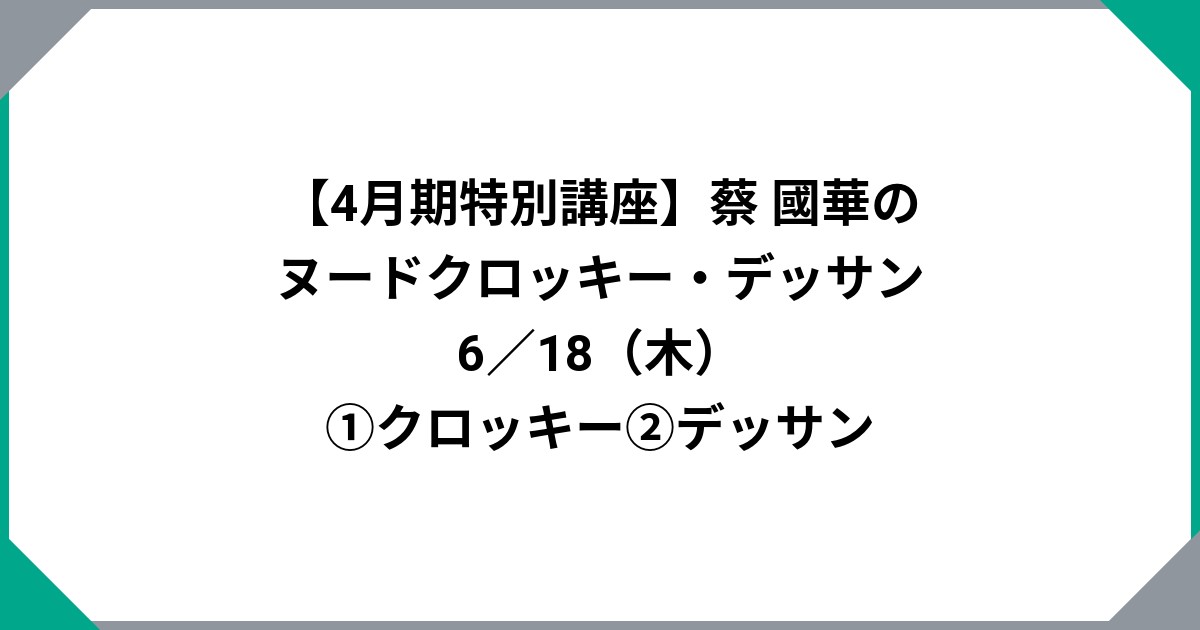 【4月期特別講座】蔡 國華のヌードクロッキー・デッサン 6/18(木)①クロッキー②デッサン 特別講座 蔡先生のページはコチラ 2026年4月10日 NEWS 「塩谷亮先生のグループ展 resonanceー共鳴ー2026展 が開催されます。 3月19日(木)〜3月28日(土) 春風洞画廊」
