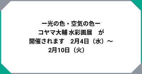 ー光の色・空気の色ーコヤマ大輔 水彩画展 TITLE ー光の色・空気の色ーコヤマ...