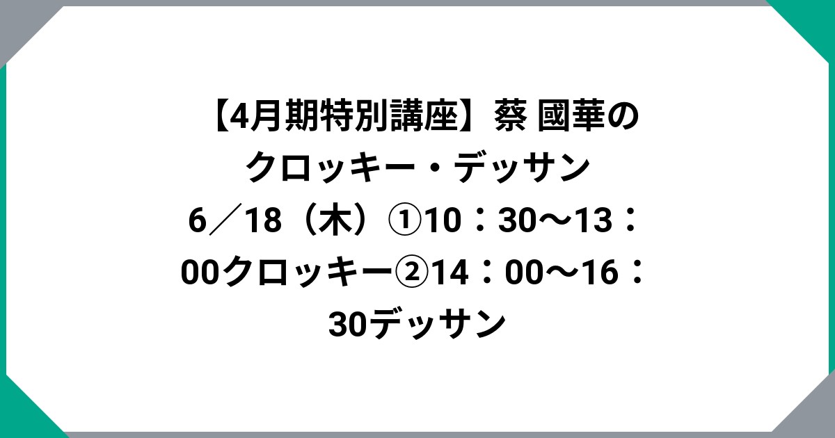 【4月期特別講座】蔡 國華のクロッキー・デッサン 6/18(木)①10:30~13:00クロッキー②14:00~16:30デッサン